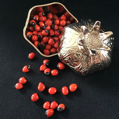 幼少期に父から小さく素朴なお守りを貰いました。そのお守りは栓の付いている大豆位の大きさの平凡な実で、その素朴さに一瞬がっかりしました。そんな事はお構いなしに父はその栓を外してひっくり返し手のひらに中身を出してくれました。その小さな実の中からは、なんと薄く小さな象がたくさんたくさん出てきたのです。海外にも行ったことの無かった幼い私の手のひらいっぱいに異国の文化を感じた感動の瞬間でした。
